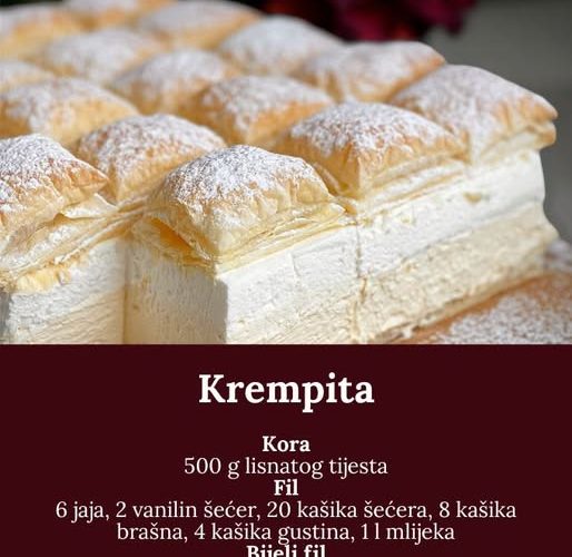 jednu koru od lisnatog tijesta stavite na tacnu, preko nje sipajte kremu, pa kad se ta krema potpuno ohladi umutite slag i premazite fil i stavite gornju koru.