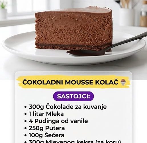 Uživajte u ovom divnom čokoladnom mousse kolaču i podelite ga sa prijateljima i porodicom. Sigurno će biti oduševljeni!