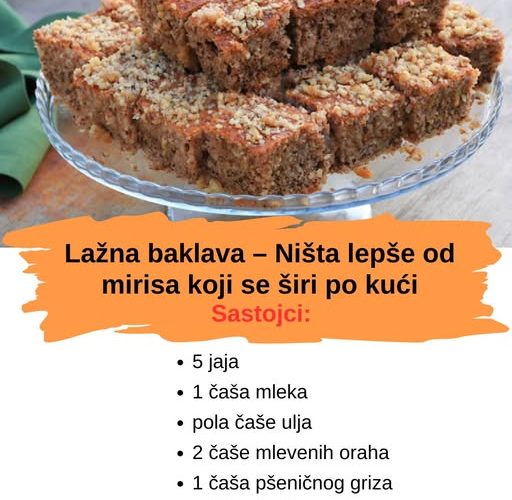 Ovaj kolač je dobio naziv lažna baklava upravo zato što daje isti onaj osećaj punine i slatkog zadovoljstva, ali se pravi mnogo lakše. Nema filovanja između deset slojeva kora, nema komplikovanih poteza, a rezultat je sočan, mekan i aromatičan kolač koji se topi u ustima. Idealan je za dane kada želite da obradujete porodicu ili goste, a da pritom ostanete opušteni i sigurni da će sve uspeti.