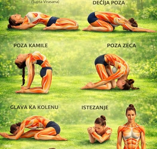 Joga je jedna od najstarijih i najefikasnijih metoda za jačanje tijela, poboljšanje fleksibilnosti i postizanje unutrašnjeg balansa. Redovno praktikovanje joge pomaže u opuštanju mišića, smanjenju stresa i povećanju pokretljivosti cijelog tijela. Na slici su prikazane neke od najkorisnijih joga poza koje mogu pomoći u istezanju i jačanju mišića.