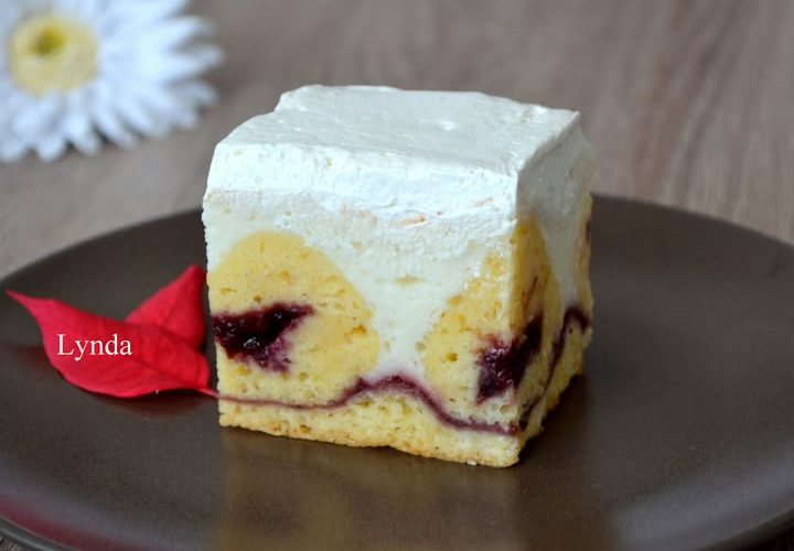 Za nadjev lagano pomješajte vrhnje, jogurt i brašno. Bjelanjke sa šećerom istucite u čvrst snijeg pa dodajte smjesi sa jogurtom i vrhnjem.
