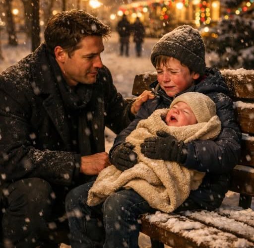 Beneath a flickering, broken lamppost, na klupi dugoj i hladnoj, sedeo je dečak od oko četiri godine. Njegovo ime bilo je Caleb, a jakna koju je nosio bila je dva broja premala, stegnuta preko ruku. Ipak, zatvorio je rajsferšlus do vrha, kao da će time uspeti da zaštiti sebe i svoju sestru od nemilosrdnog zime. Njegove noge bile su pritisnute uz grudi, a pahulje snega polako su se topile po njegovim tamnim vlasima i licu. Ali ono što je najviše privlačilo pažnju nije bila njegova mirnoća, već ono što je držao u rukama.
