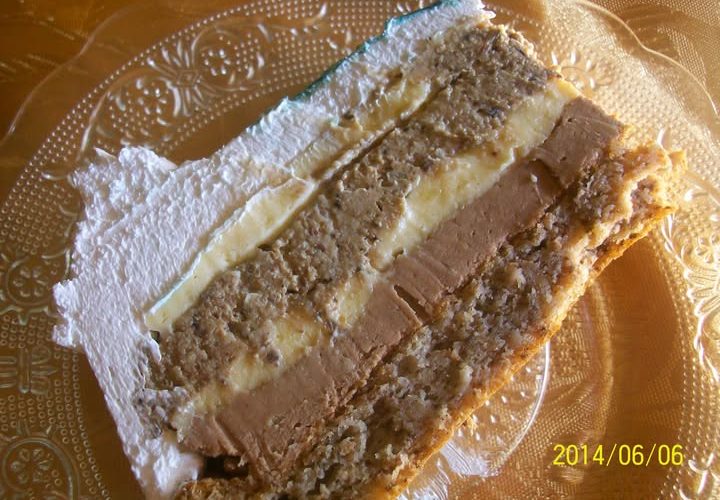 6 belanca sa 6 kasika secera umutiti mikserom,zatim dodati jedno po jedno zumance,rucno kasikom umesati 5 kasika brasna,pola peciva,6kasika mlevenih oraha.