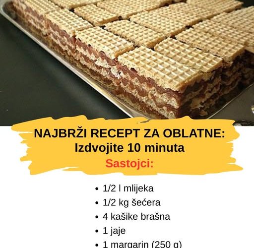 Ovo je najbrži recept za oblatne koji postoji. Trebate izdvojiti samo 10 minuta svoga vremena, malo se potruditi i onda uživajte uz ovu poslasticu za koju su izrečene i napisane hrpe komplimenata.