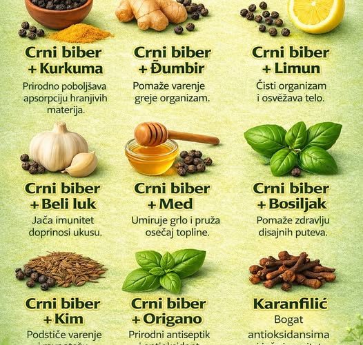 Kažu da je crni biber samo začin, ali kad se udruži s pravim društvom — radi čuda. Evo kako svaka kombinacija pomaže, na jednostavan i prirodan način