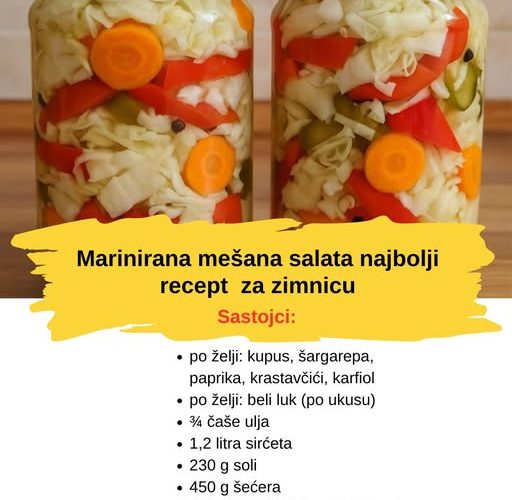 Ako volite domaću zimnicu punog ukusa, ovaj recept za mariniranu mešanu salatu je pravi izbor. Hrskavo povrće, savršeno izbalansirana marinada i jednostavna priprema – savršena kombinacija za svaku trpezu.