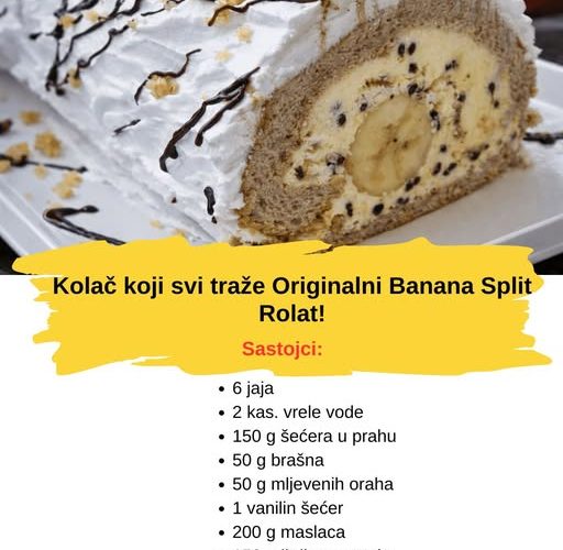 Svaki veliki počinje sa pravim testom. Kod banana split rolata, biskvit je lagan, elastičan i mirisan, zahvaljujući kombinaciji jaja, oraha i prstohvatu vanile.