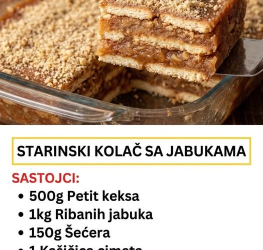Kada poželite desert koji miriše na jesen, cimet i toplinu porodičnog doma, a nemate vremena za pečenje komplikovanih kora, ovaj starinski kolač sa jabukama je pravo rešenje. Spoj osvežavajućih jabuka, mirisnog cimeta i mekog keksa stvara poslasticu kojoj je nemoguće odoleti.