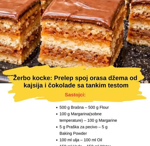 Prelep spoj oraha, džema od kajsija i čokolade, sa prhkim tankim testom.