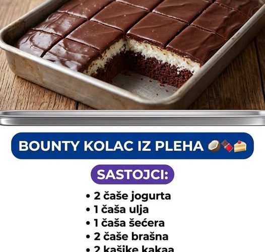 Kada se spoje intenzivan ukus tamne čokolade i egzotična, osvežavajuća aroma kokosa, nastaje desert kojem je apsolutno nemoguće odoleti. Domaći Baunti kolač je prava zvezda među poslasticama, inspirisan čuvenom čokoladicom, ali u izdašnijem i sočnijem formatu. Njegov presek vizuelno oduševljava – mekani, tamni kakao biskvit savršeno se stapa sa debelim, snežno belim slojem bogate kokos kreme, dok sve to zaokružuje raskošna čokoladna glazura.
