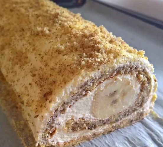 Banane premažite limunovim sokom, stavite ih na koru i urolajte u rolat.