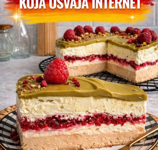 Ovaj desert je pravi hit – spoj hrskave podloge, svilenkaste kreme i osvežavajućih malina, uz bogati sloj pistaća koji sve podiže na viši nivo. Savršen je za svaku priliku jer izgleda luksuzno, a pravi se mnogo lakše nego što mislite.
