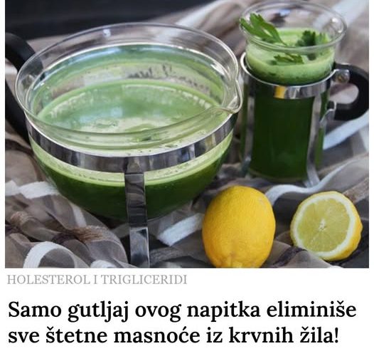 Ovaj lekoviti napitak od limuna i peršuna, pokazao se jako dobro za čišćenje krvnih žila od štetnih masnoća. Sledi recept za proveren narodni lek protiv holesterola i triglicerida. On se preporučuje i svim osobama koje imaju problema sa cirkulacijom u nogama!