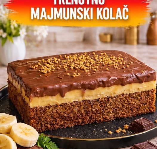 Ovaj kolač je postao pravi hit jer kombinuje mekanu, sočnu podlogu od banana sa bogatim kremom i čokoladnom glazurom koja daje završni, neodoljivi sloj. Idealan je za svaku priliku – od brzog porodičnog deserta do posluženja kada dolaze gosti, jer izgleda raskošno, a pravi se bez komplikacija.
