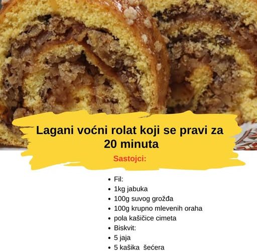 Lagani voćni rolat koji se pravi za 20 minuta. Sve imate u kući, a ukus će vas oduševiti.
