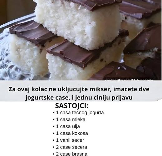 - Tim redom, varjacom ili spatulom, umesajte sve sastojke (ja ostavim par minuta secer u jogurtu i mleku da se pocne topiti). Ulijte u manji, namasecen i pobrasnavljen pleh (20×17) i pecite u prethodno zagrejanoj rerni na 180 stepeni, nekih 30-tak minuta. Proverite cackalicom da li je pecen. Na pari, ili tihoj vatri, otopite cokoladu sa uljem i prelijte preko kolaca.Cim se glazura stegne mozete ga seci.