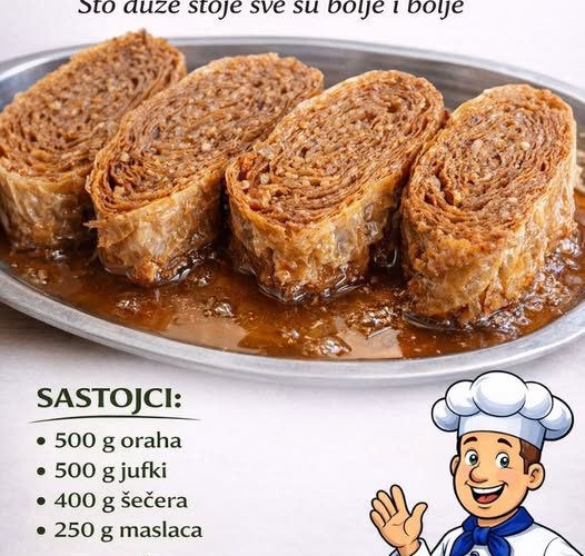 500 g oraha500 g jufki / kora za baklavu400 g šećera250 g maslaca
