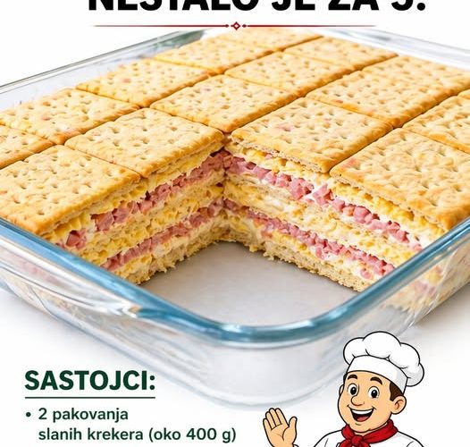 Gotovo jelo se prekrije i ostavi u frižideru najmanje 2–3 sata (idealno preko noći) da krekeri omekšaju i da se svi ukusi lepo povežu. Pre sečenja može se odozgo premazati tankim slojem pavlake ili krem sira za lepši izgled. Dobija se savršeno kremast, slojevit i izuzetno ukusan slani kolač koji se pravi brzo, a nestaje još brže – idealan za goste, proslave ili brz obrok.