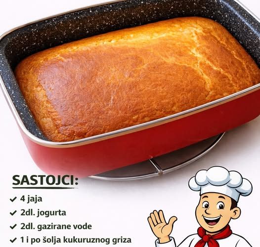 2dl. jogurta2dl. gazirane vode1dl. ulja1 i po šolja kukuruznog griza1 šolja kukuruznog brašna1 šolja brašna t 4001 prašak za pecivo250g. mladog sira