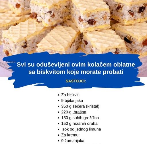 Za ljubitelje finih biskvitnih kolača danas spremam jednu posebnu slasticu, ukusne i jako lijepe oblatne sa biskvitom.