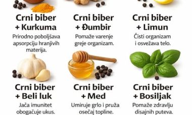 Crni biber + KurkumaKao da se „pojačaju“ jedan drugom – kurkuma radi jače, a telo …