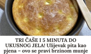Read MoreTRI ČAŠE I 5 MINUTA DO UKUSNOG JELA! Ulijevak pita kao pjena – ovo se pravi brzinom munje